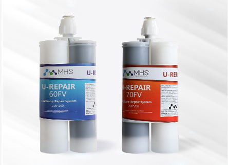 聚氨酯修补材料为A、B双组份100%固态基,材料包括双组份胶桶包装60FV、70FV、80FV、罐装60TM、70TM、80TM等。非常适用于修复具有弹性体特性的产品,如橡胶、聚氨酯、传送带、皮带轮、绝缘层等出现各类损伤。